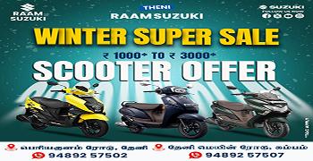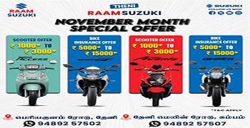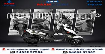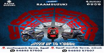 Established in 2016, RAAM SUZUKI, Periyakulam Road is one of the most well-known and trusted Suzuki Bike Showroom in Theni. RAAM SUZUKI is an authorised Suzuki Motorcycle Dealer with a state-of-the-art showroom where you can check out the new Avenis,take it out for a test ride, and book your dream ride. On our website, you can explore the entire range of two-wheelers by Suzuki Motorcycles. You can also find out the ex-showroom price of different variants, calculate EMI, get a callback, and even book a suitable time slot for a test ride. Check out your favourite Suzuki motorcycles and scooters conveniently, with the easy-to-use filters to simplify your search. RAAM SUZUKI offers the entire range of Suzuki Motorcycles, Big Bikes, and Scooters in the Avenis from RAAM SUZUKI,check out its features, take it for a ride, get a quote, and book your favourite bike from the entire range of Suzuki motorcycles and scooters in. At RAAM SUZUKI, you can also avail two-wheeler finance to buy your favourite ride.